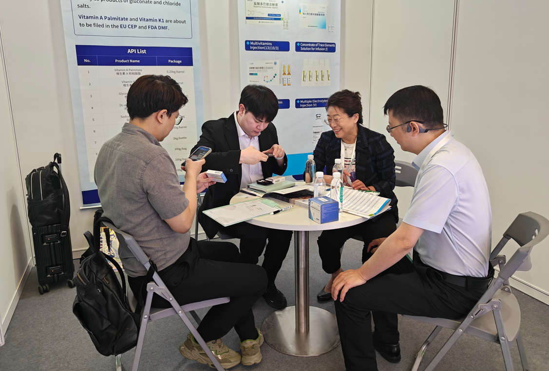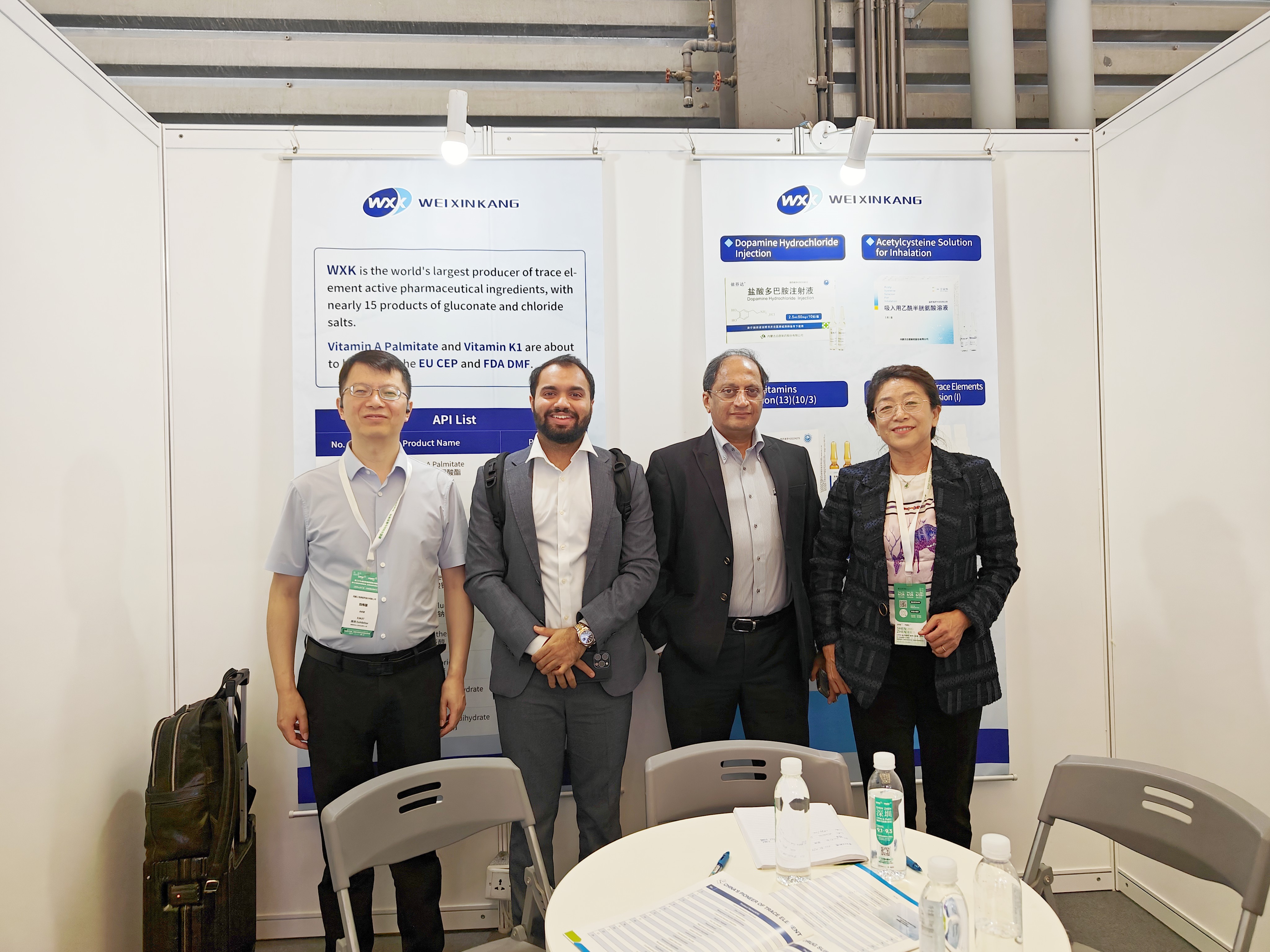 作為在腸外營養(yǎng)領(lǐng)域致力于為全球合作伙伴提供原料、制劑產(chǎn)品及產(chǎn)能綜合解決方案的服務(wù)商,衛(wèi)信康攜微營養(yǎng)素系列原料藥,以及公司重磅制劑:衛(wèi)優(yōu)佳??小兒多種維生素注射液(13)、衛(wèi)素齊??注射用多種維生素(13)(10/3)、依芬達(dá)??鹽酸多巴胺注射液、衛(wèi)苷檸??復(fù)方氨基酸注射液(20AA)等產(chǎn)品亮相本次展會,全方位展示了公司在微營養(yǎng)素領(lǐng)域的技術(shù)積淀與創(chuàng)新成果。與國際制藥巨頭、創(chuàng)新先鋒及活力新銳同場展示,彰顯了衛(wèi)信康的卓越實力和顯著競爭力。公司核心產(chǎn)品整齊陳列,吸引了眾多新老客戶駐足觀看和咨詢,國際團(tuán)隊與來自歐美、印度、東南亞等全球各地客戶進(jìn)行了熱情且深入的商務(wù)洽談,現(xiàn)場人潮攢動,氣氛活躍。